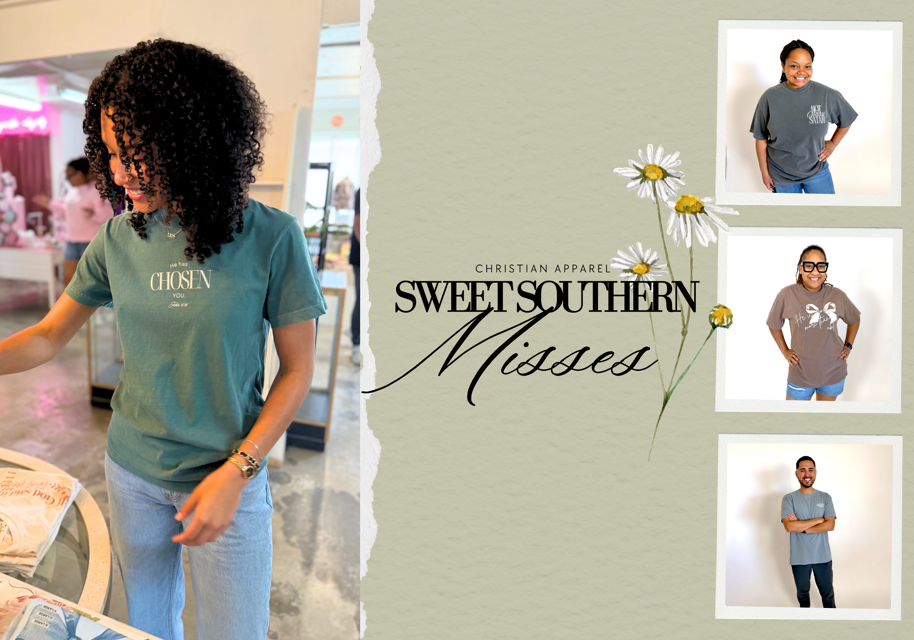 Get to know us moreSweet Southern Misses is a brand built on bold faith, inner healing, and reminding women of their God-given worth. Her mission is to empower others through designs inspired by scripture, sermons, and life’s hardest moments. What started as a passion project quickly became a movement of sisterhood, self-love, and spiritual strength. Jennifer believes that through faith and vulnerability, we can all rise and walk boldly in who God created us to be.